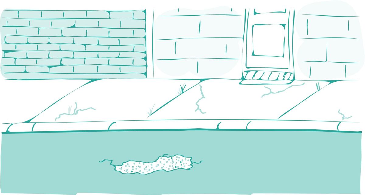 This image is an actual photo of The Lorem Ipsum office spaces. The pot hole has since been repaired.