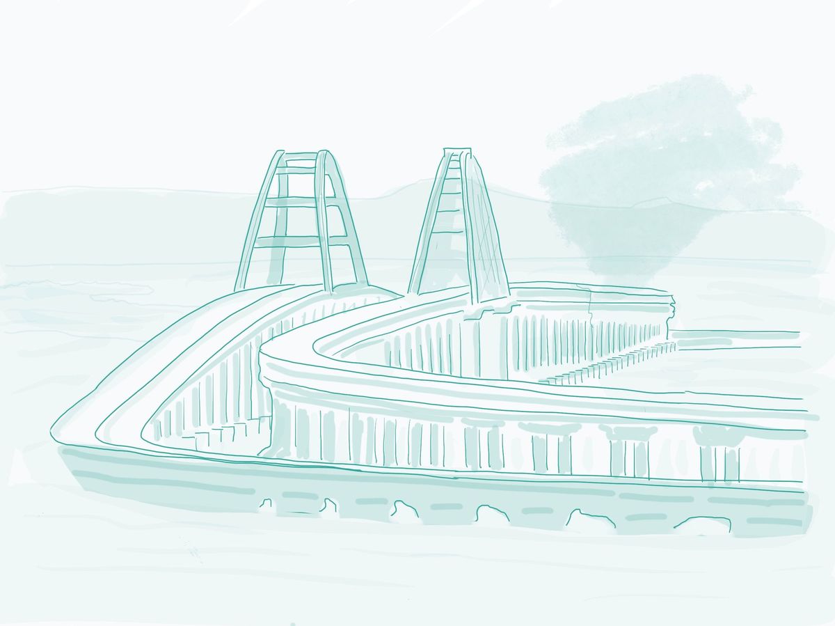 This is an illustration of the bridge between Russia and the Crimean Peninsula after Ukraine attacked it. Mostly, I like the headline Crimea River, an the Justin Timberlake song by the same name (or similar).