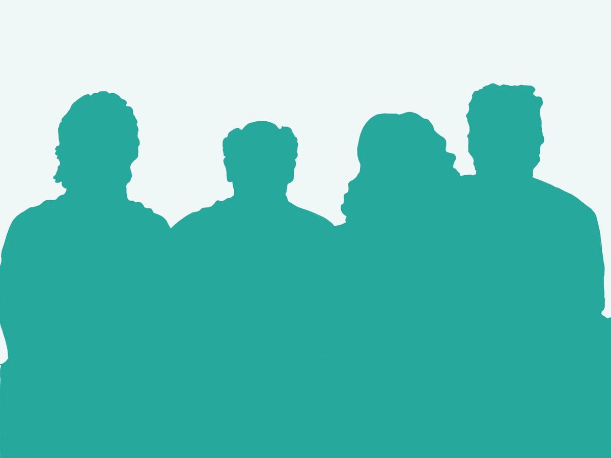 Here, you see an illustration of the silhouettes of the cast of Seinfeld.